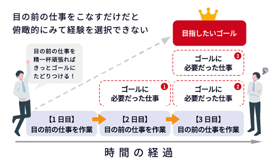 同じスキルを持っている人でも、人によってパフォーマンスが異なって見えるのは何故か。それは視点の高さ・視点の多さに差があるからです。視点の高さ・視点の多さは経験によって獲得できますが、実業務において与えられる経験の機会は限られています。